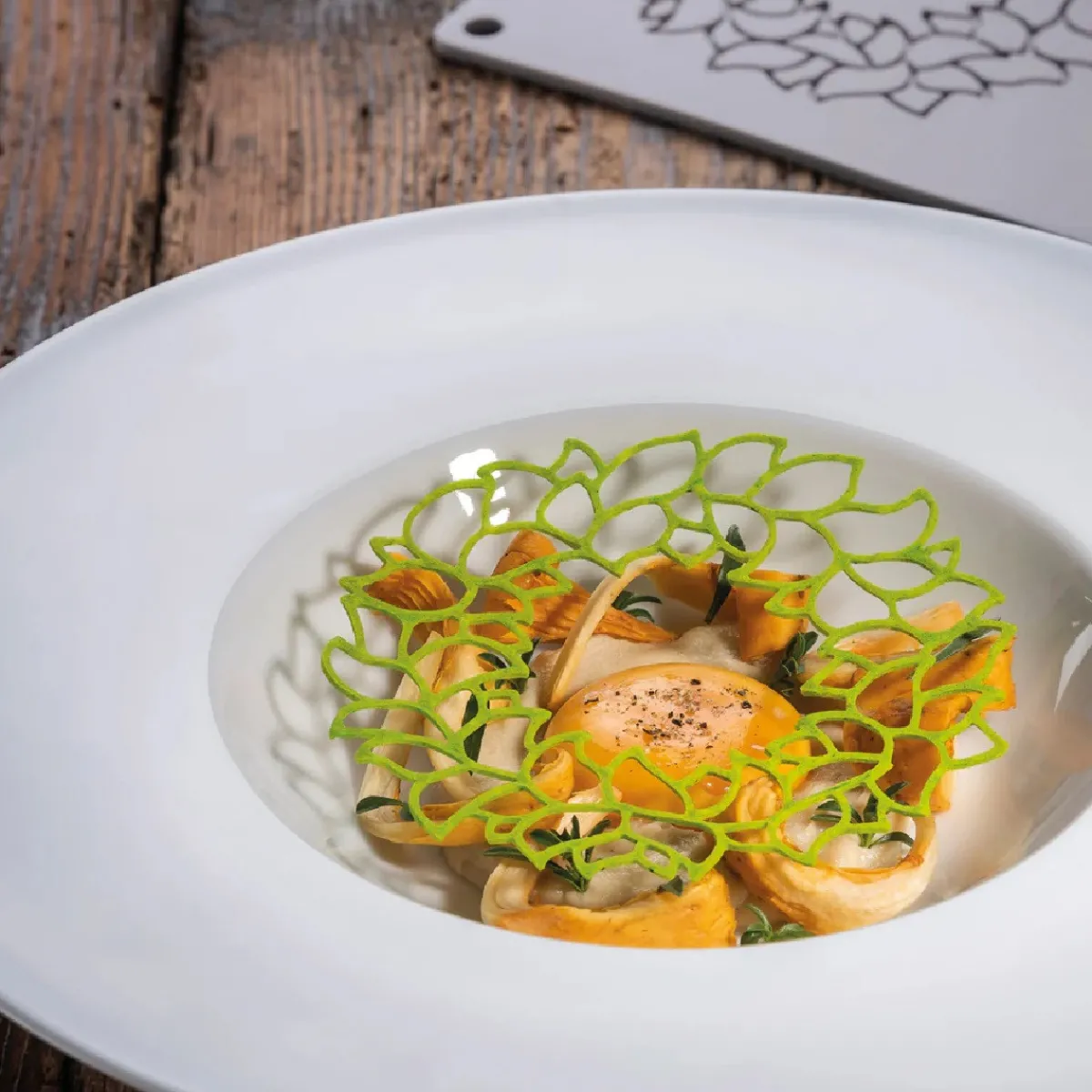 Deze vorm is ideaal voor het verwerken van tuillebeslag, , isomalt, eiwitbeslag, of gelei met een stevige consistentie. Gebruik de Bladerkrans bijvoorbeeld als een subtiele suikerkrans rond een dessert, maar ook leuk als een decoratief element van witte chocolade op een moussegebakje.