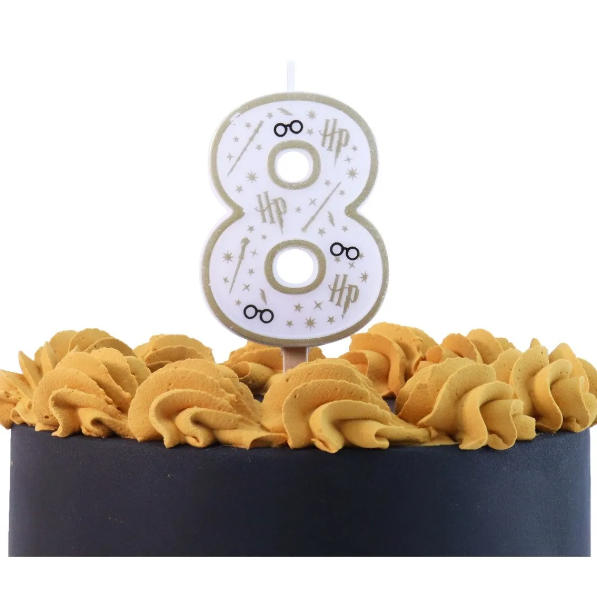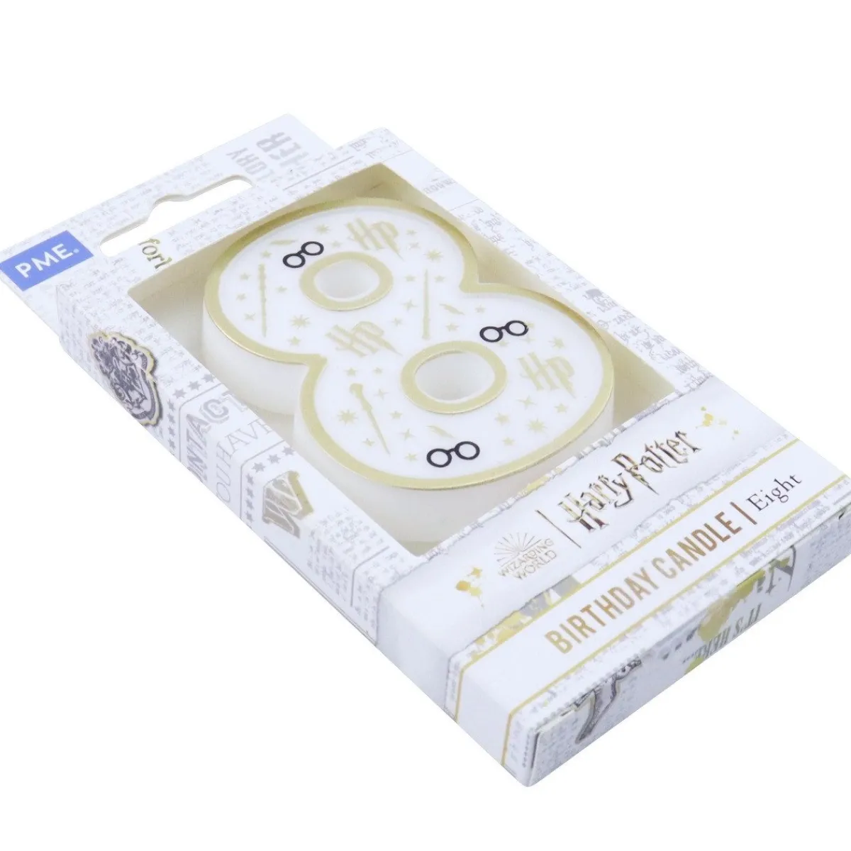 Het PME Harry Potter Taartkaarsje 8 is de perfecte taartdecoratie voor Harry Potter fanaten! Dit cijfer 8 heeft een witte ondergrond met daarop gouden Harry Potter symbolen en natuurlijk de bekende zwarte bril van Harry Potter. De kaars is 5 cm bij 7 cm en daaronder zit en houtenprikker. Fantastisch om je Harry Potter baksels mee af te werken.