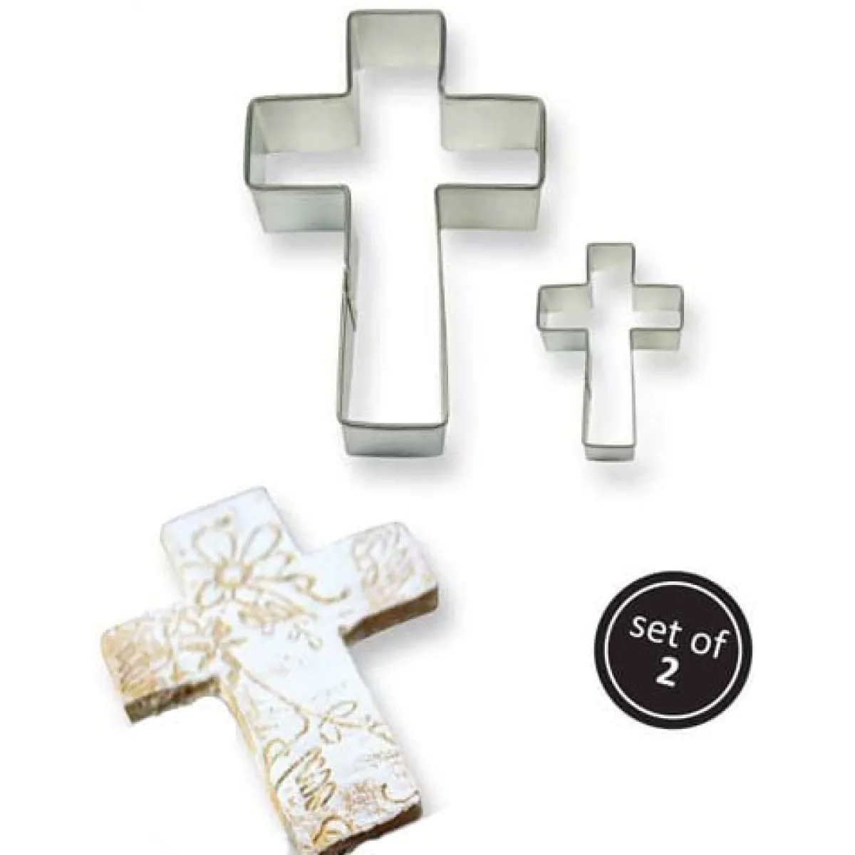 Dit set bestaat uit 2 kruizen. Hiermee kan je koekjes, fondant of marsepein uitsteken.