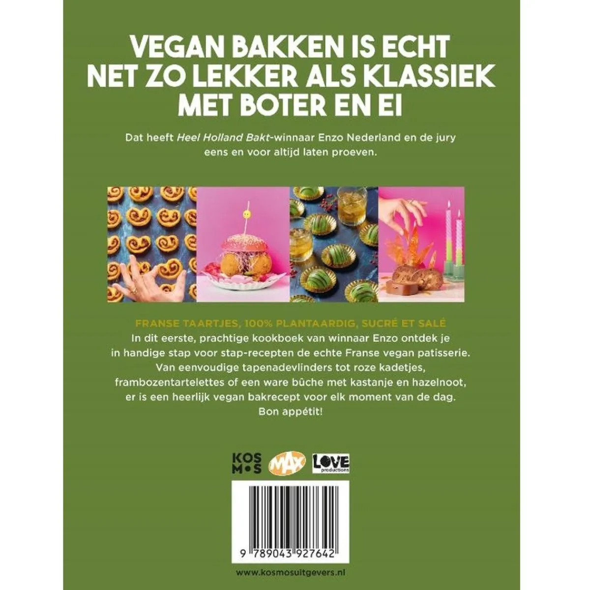 In het eerste bakboek van Heel Holland Bakt-winnaar Enzo Pérès-Labourdette ontdek je in handige stap voor stap-recepten de echte Franse vegan patisserie. Met prachtig zelfontworpen omslag. Dat plantaardig bakken echt net zo lekker is als klassiek met boter en ei, heeft Enzo Nederland en de jury eens en voor altijd laten proeven. Zelfs meesterbakker Robèrt van Beckhoven is om. Van eenvoudige tapenadevlinders tot roze kadetjes, frambozentartelettes of een ware bûche met kastanje en hazelnoot, er is een heerlijk vegan bakrecept voor elk moment van de dag. Bon appétit!