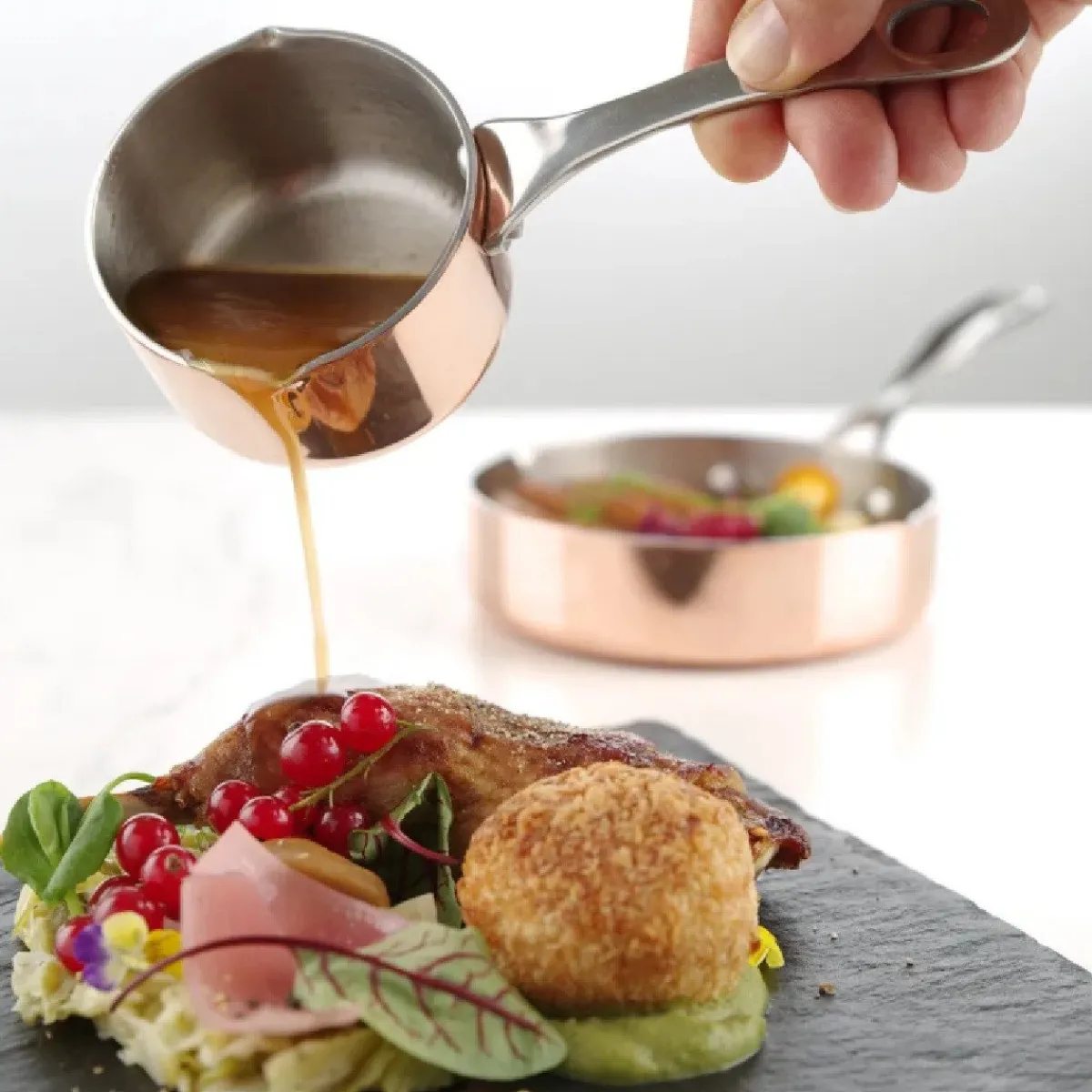 Gebruik het bijvoorbeeld voor het presenteren van boter, sauzen, jus of andere bijgerechten. De handige schenktuit maakt het mogelijk om zonder morsen te schenken, wat extra handig is bij het serveren aan tafel.