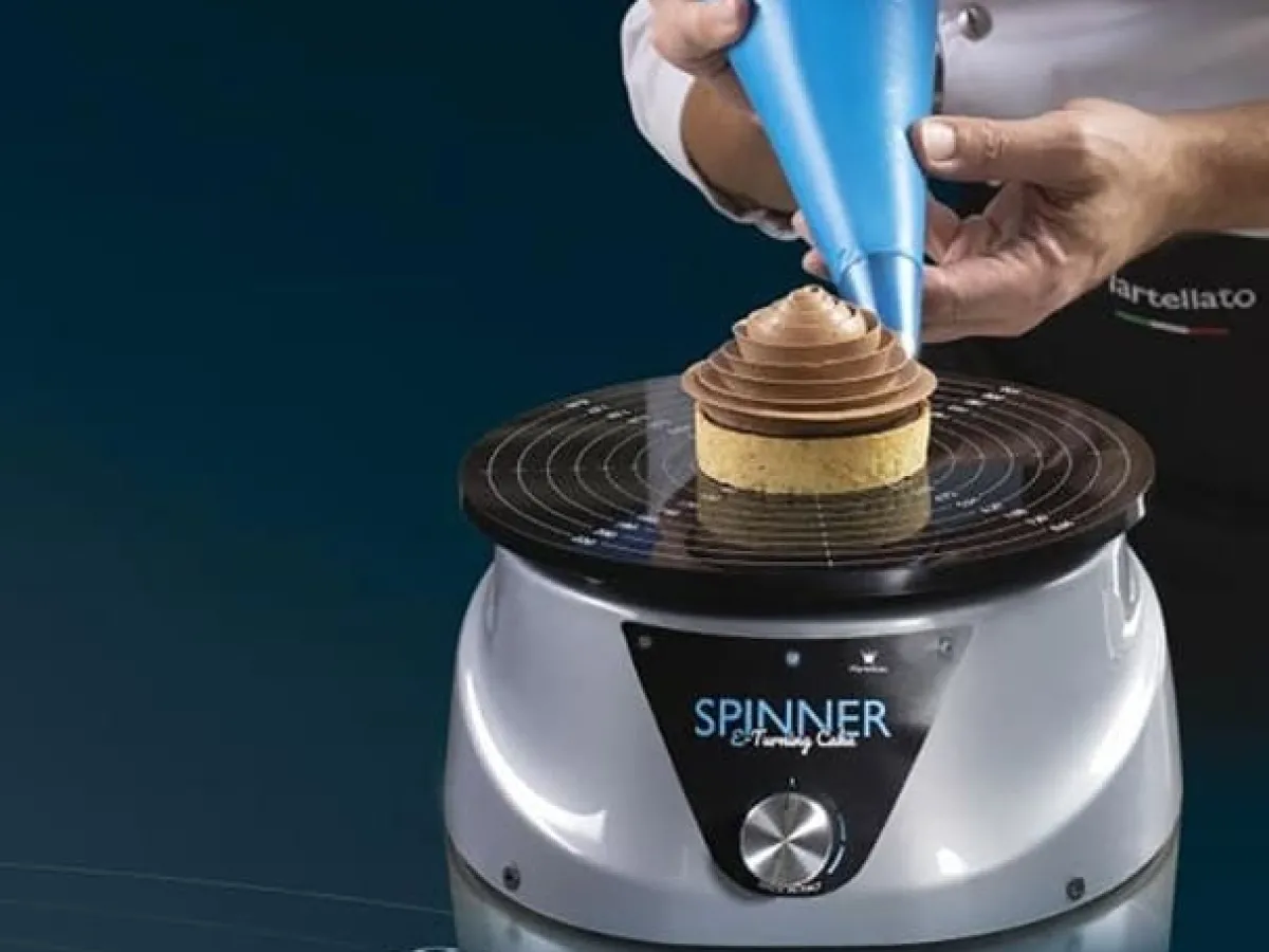 Elektrisch draaiplateau van Martellato. Met deze ‘Spinner’ kun je eenvoudig cakes en taarten decoreren, chocoladedecoratie creëren en je producten voorzien van de fijnste details. Krijg perfecte resultaten door simpelweg de Spinner aan te zetten, de snelheid én de rotatie-richting te bepalen. Zo heb je beide handen vrij om je creatie nog mooier te maken!