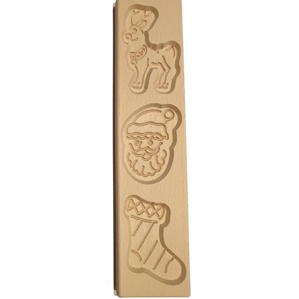 Maak zelf heerlijke speculaasjes met deze ambachtelijke speculaasplank. Deze speculaasplank heeft een Kerst motief en bestaat uit een kerstman, kerstsok en een rendier.