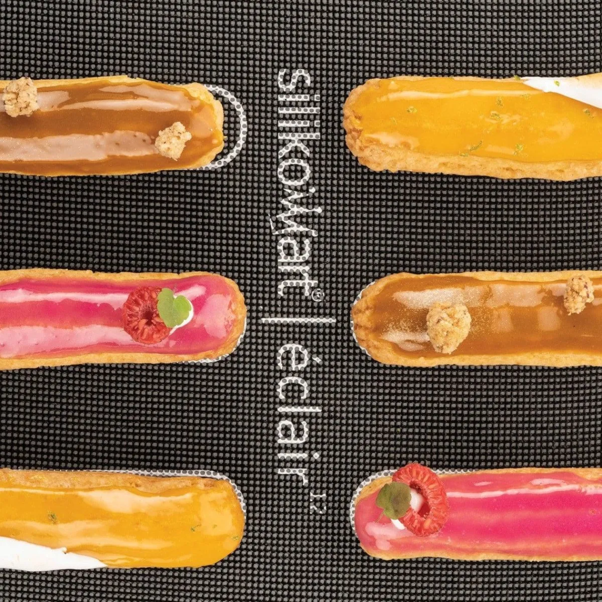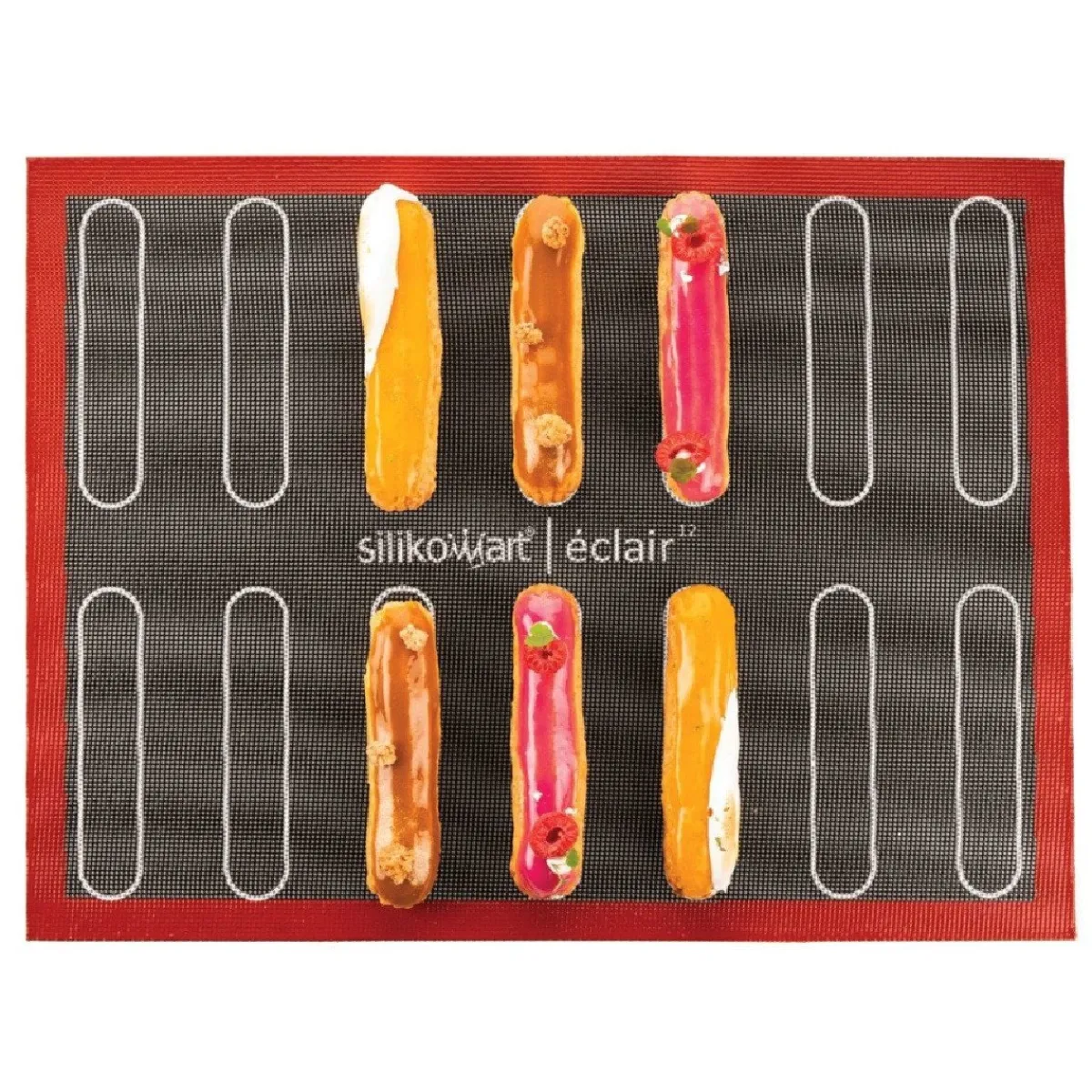 Deze bakmat air kan gebruikt worden voor koekjes, brood en dergelijke. Maar is uitermate geschikt voor het bakken van éclairs en soezen. Op de bakmat zijn namelijk de vormen van deze lekkernijen weergegeven. Op deze manier kun je eenvoudig allemaal gelijke baksels creëren.
