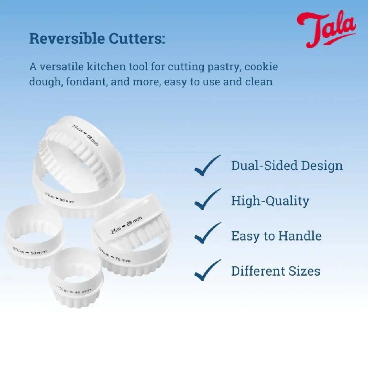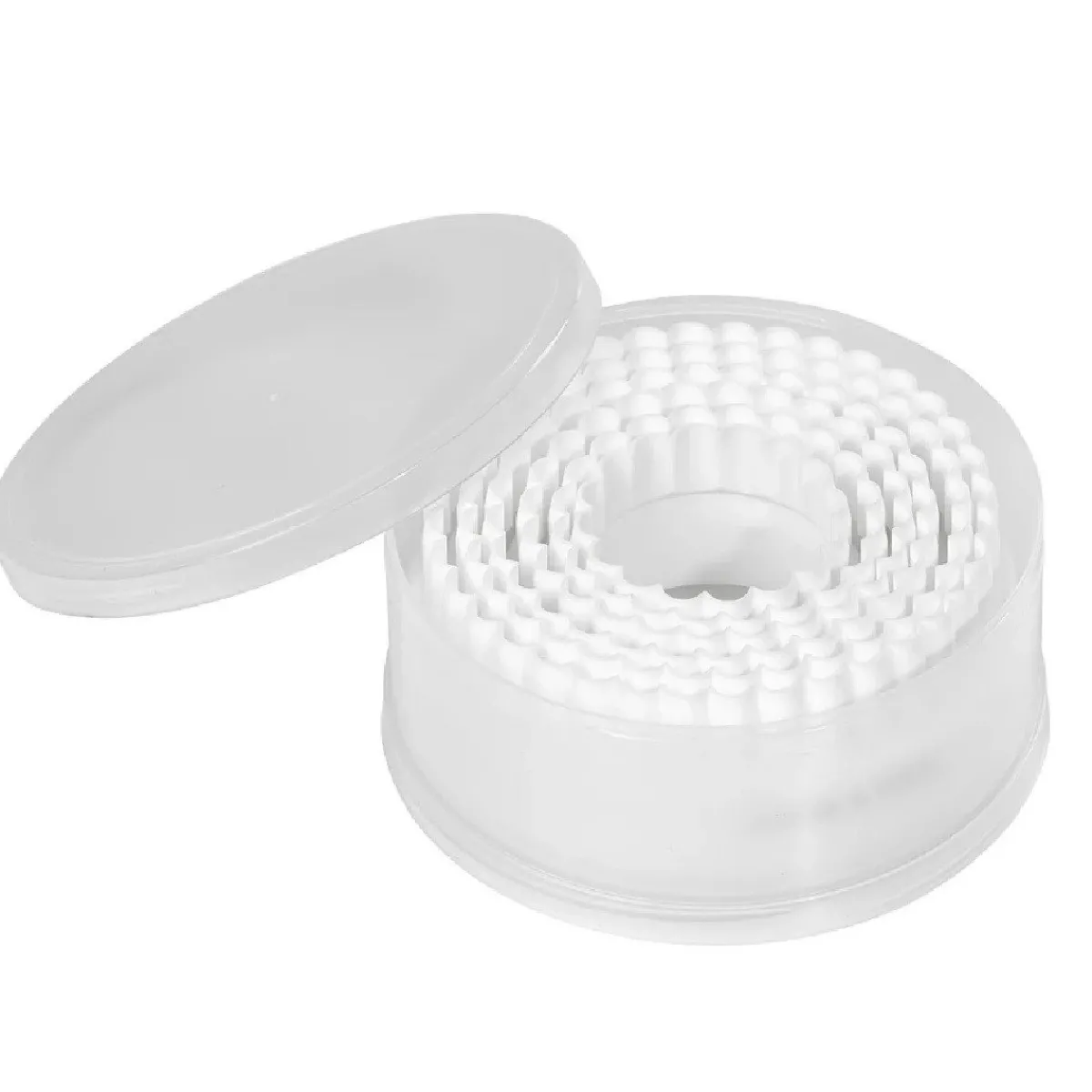De Tala Uitstekers Rond (Glad & Kartel) Kunststof Set/6 bestaat uit zes stevige uitstekers in verschillende maten, met zowel een gladde als gekartelde rand. Ze worden geleverd in een handige opbergdoos.