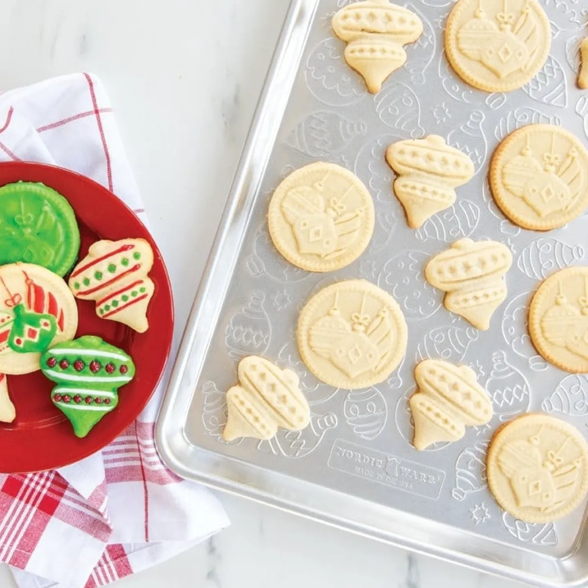 Een hulst takje, klassieke kerstversiering en een springendhert. Deze drie figuren kun je allemaal uitdrukken op je (koekjes)deeg met dezeNordic Ware Koekjesstempel Kerst. De stempels zijn gemaakt van gegotenaluminium met rode hardhouten handvatten. Daarnaast hebben de stempels eenprachtig opvallend randdetail, om ze te onderscheiden van andere koekjes. Verasje gasten tijdens de kerstdagen met fraaie koeken.