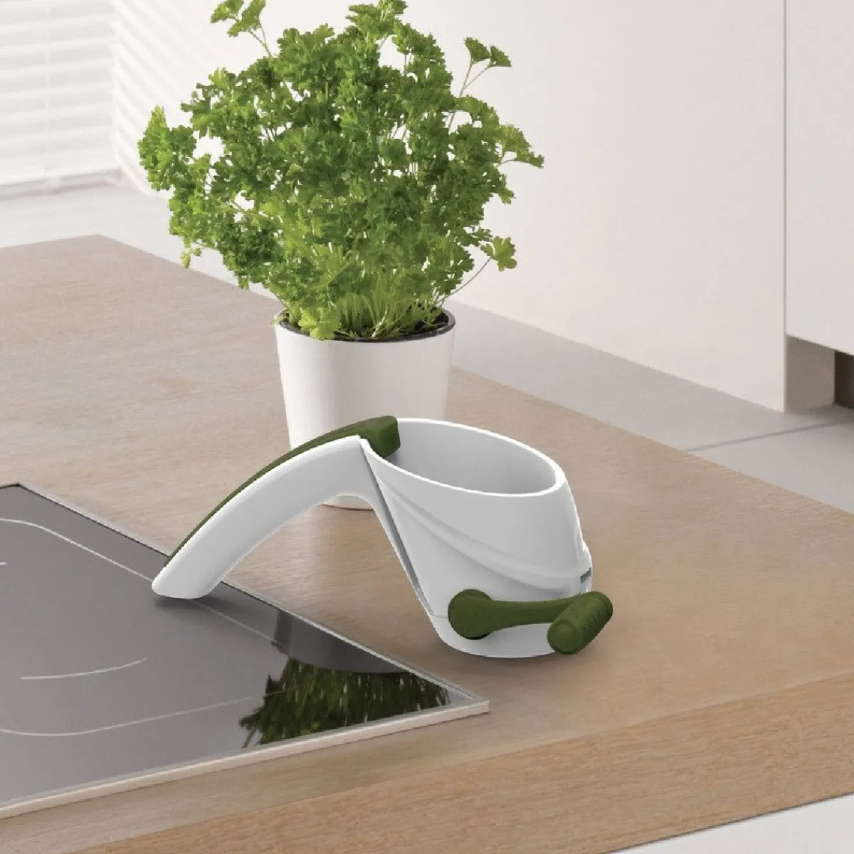 Ideaal voor het verwerken van verse kruiden! Gebruik deze handige keukentool voor onder andere basilicum, peterselie of salie. De kruiden plaats je bovenin het hulpmiddel en dankzij het slimme draaimechanisme zijn ze binnen no-time fijngemalen.