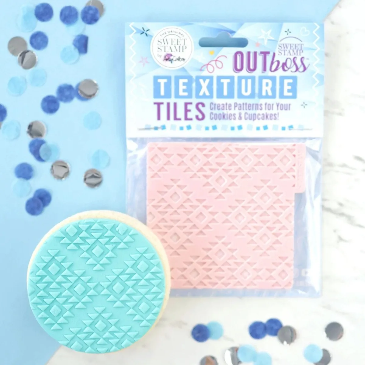 Geef je baksels een grafische uitstraling met de Sweet Stamp Outboss Aztec. Dit is een textuurplaat met een strak, geometrisch patroon geïnspireerd op Azteekse vormen. Perfect voor het creëren van decoraties op koekjes of cupcakes, zoals fondant toppers.