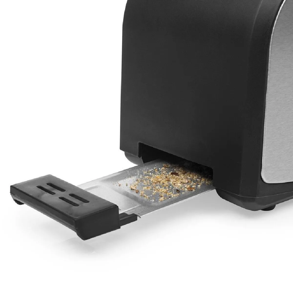 Verder is het schoonmaken ook eenvoudig. De kruimellade is uitneembaar en kan gemakkelijk afgewassen worden.