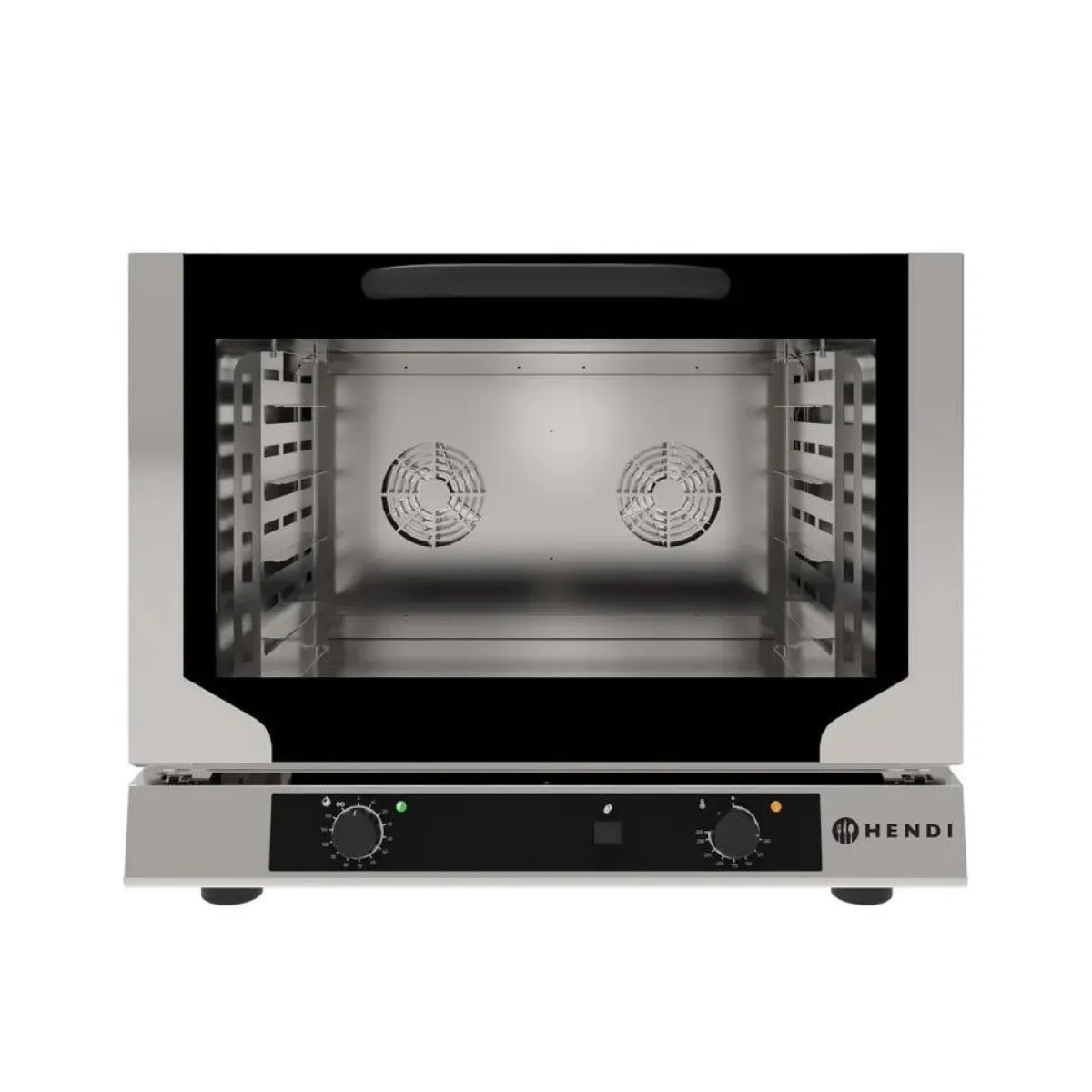 Deze uitvoering is vervaardigd uit AISI 304 roestvast staal. De ovenkamer wordt geperst met afgeronde hoeken voor eenvoudige reiniging. Glazen deur voelt koel aan dankzij 2 lagen glas met zwaartekrachtventilatie ertussen, scharnieren aan de onderkant. Binnenste glaspaneel kan worden verwijderd voor eenvoudige reiniging. Deurafdichting van dik silicone, gemonteerd in de behuizing voor eenvoudig onderhoud. Kamer voorzien van LED-verlichting, geeft voldoende zicht op het proces. Ovenkamer geïsoleerd om de warmte binnen te houden, veilig en energiezuinig. Biedt plaats aan 4 trays van 600×400 mm, niet inbegrepen in de set. De temperatuur kan worden ingesteld van 100°C tot 260°C. De timer kan worden ingesteld tot 120 minuten, continue werking mogelijk. Waterbeschermingsklasse: IPX3.