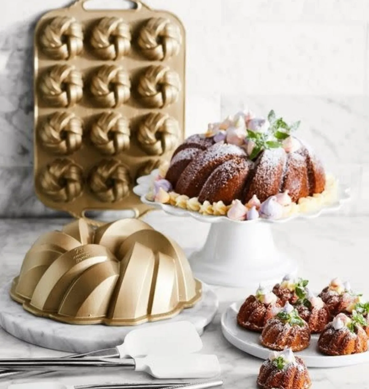 Ter ere van het 75-jarige jubileum van Nordic Ware hebben ze twee prachtige ‘braided’ vormen ontworpen. Deze grote tulband-variant is er daar één van. De eenvoudige, maar mooi strak verweven strengen symboliseren continuiteit, saamhorigheid en kracht. De Braided Bundt heeft gladde gebogen banden die als golven stromen in een wervelende, nooit eindigende cirkel.