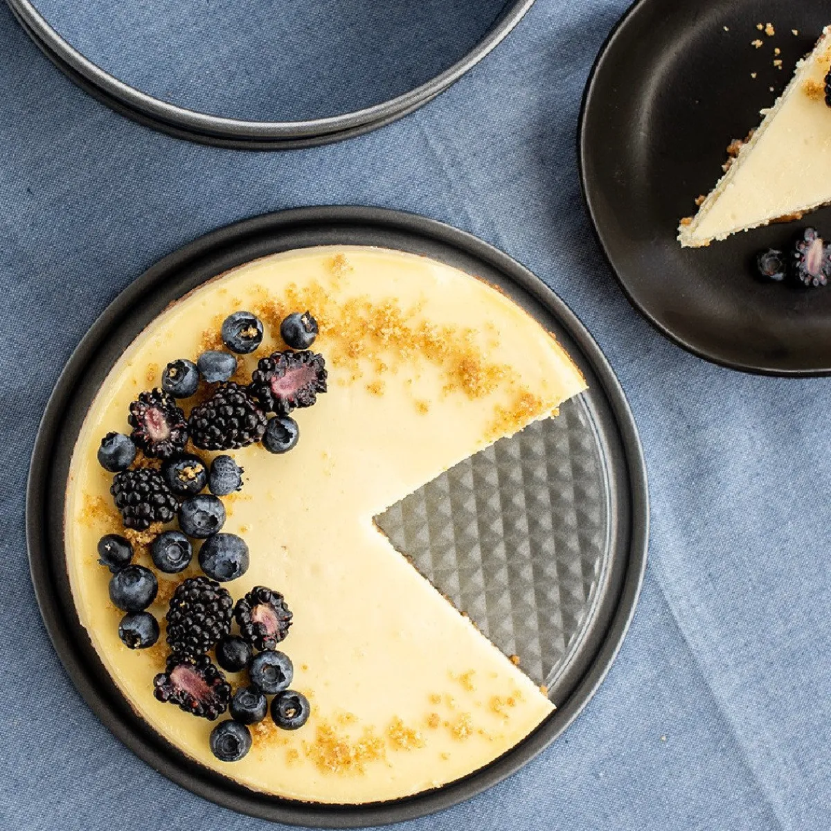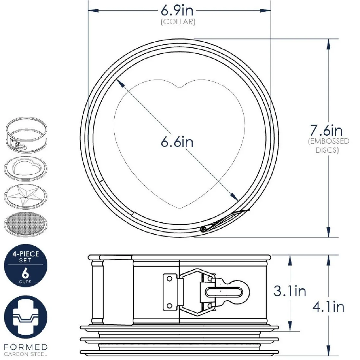 De Nordic Ware Springvorm Ø17,5cm Set/3 is een set van drie springvormen, prefect voor het bakken van verschillende taarten, cheesecakes en quiches. De set heeft 3 verwisselbare bodems, namelijk een ster, een hart en een normale bodem. De springvormen hebben een diameter van ca 17,5 centimeter en zijn gemaakt van gietijzeren aluminium, wat zorgt voor een gelijkmatige warmteverdeling en uitstekende bakresultaten. Deze set biedt de flexibiliteit om meerdere lagen taarten te bakken of om verschillende smaken tegelijk te bereiden.