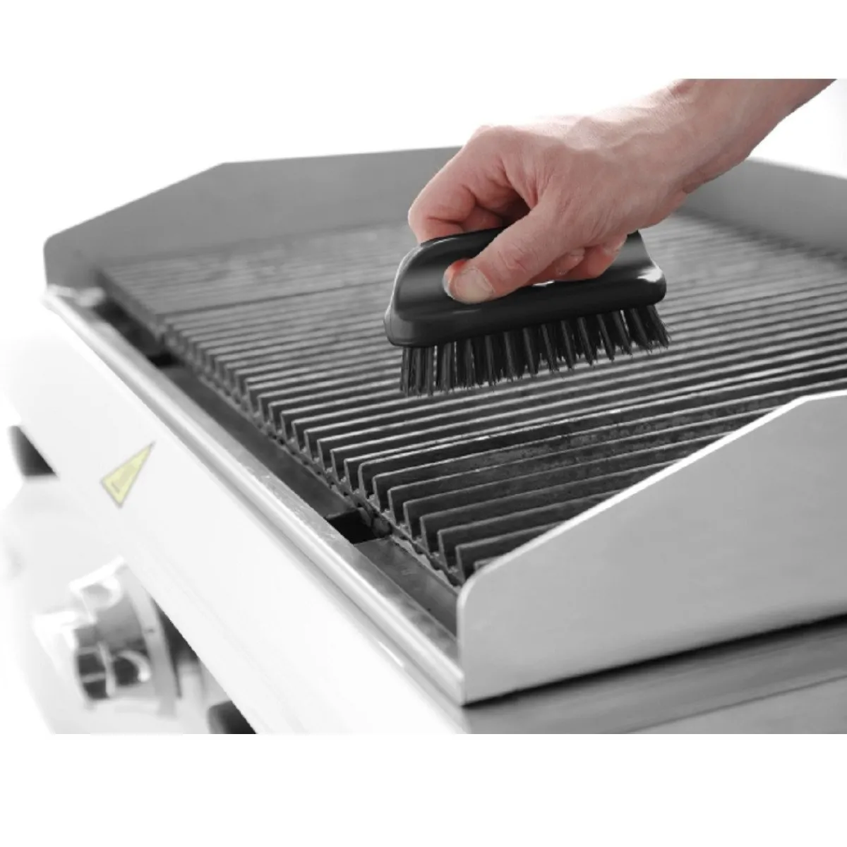 Deze blokstaalborstel heeft een comfortabele zwarte kunststof handgreep en ligt daarom makkelijk in de hand. De borstel haren zijn gemaakt van staal.