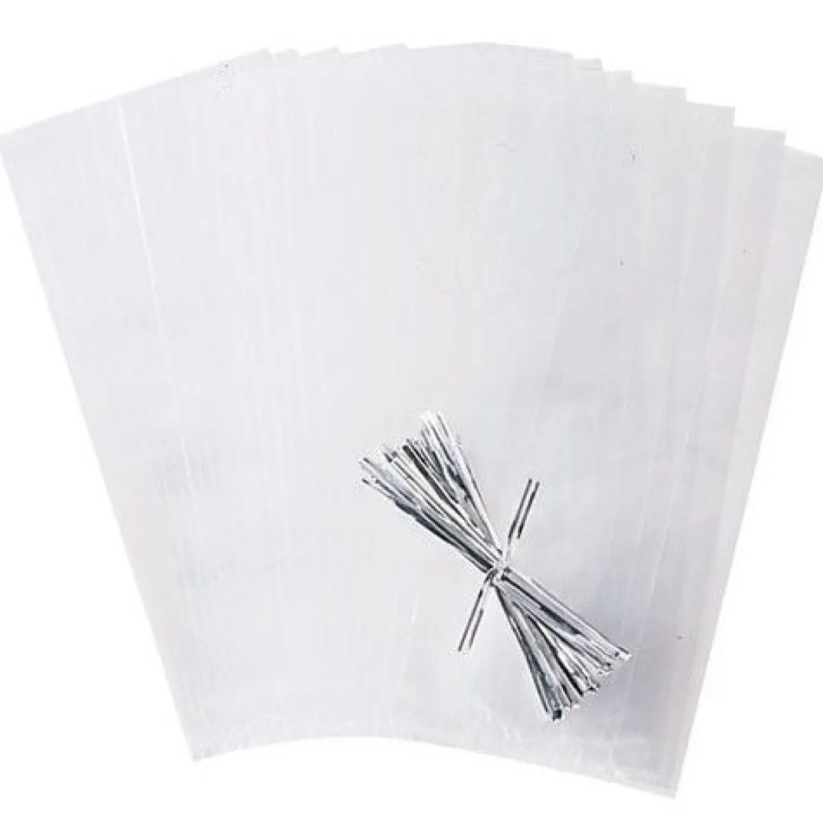 Deze handige transparante zakjes van Wilton gebruik je om lollies, chocolaatjes, schuimpjes etc. op een leuke manier te verpakken. De set bestaat uit 25 zakjes met 25 sluitclips. De afmetingen zijn ongeveer 10 x 23 cm.