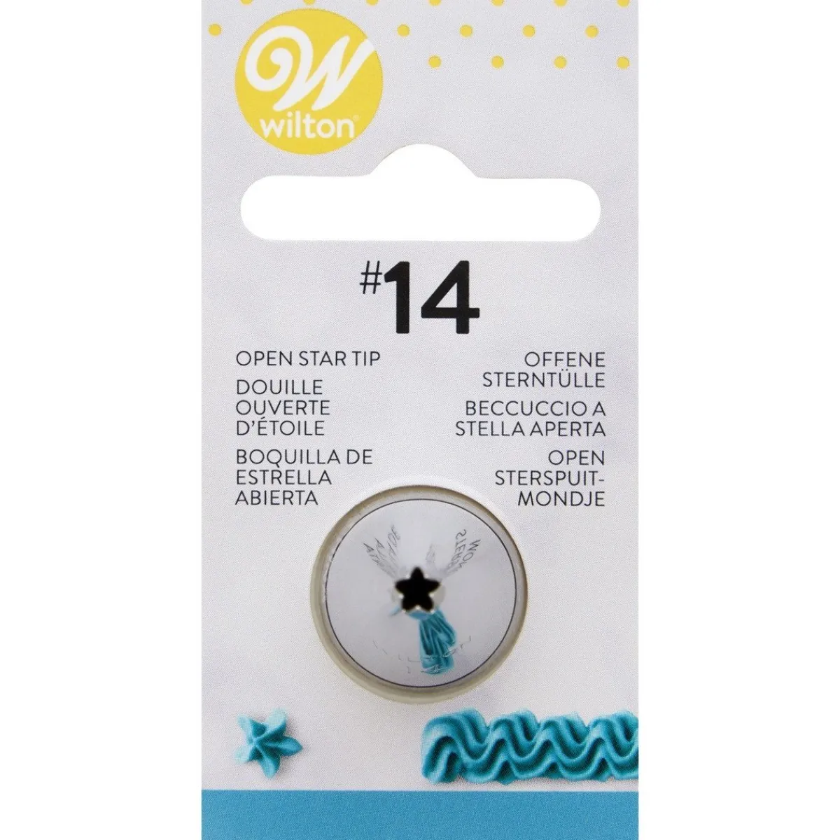 Metalen spuitmondje van het merk Wilton te gebruiken bij het maken van sterren, dropflowers en gekartelde randjes. Het spuitmondje is gemaakt van roestvrijstaal en dus geschikt voor de vaatwasser.
