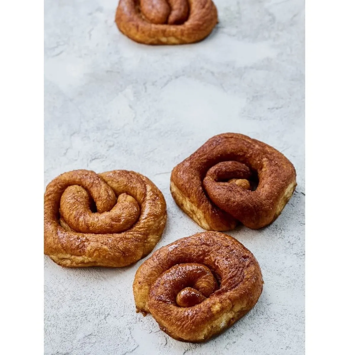 4. Rol de strengen op tot een soort knoop en leg ze tegen elkaar aan op een bakplaat bedekt met vetvrij bakpapier. Laat deze vervolgens nog ca. 30 minuten rijzen.