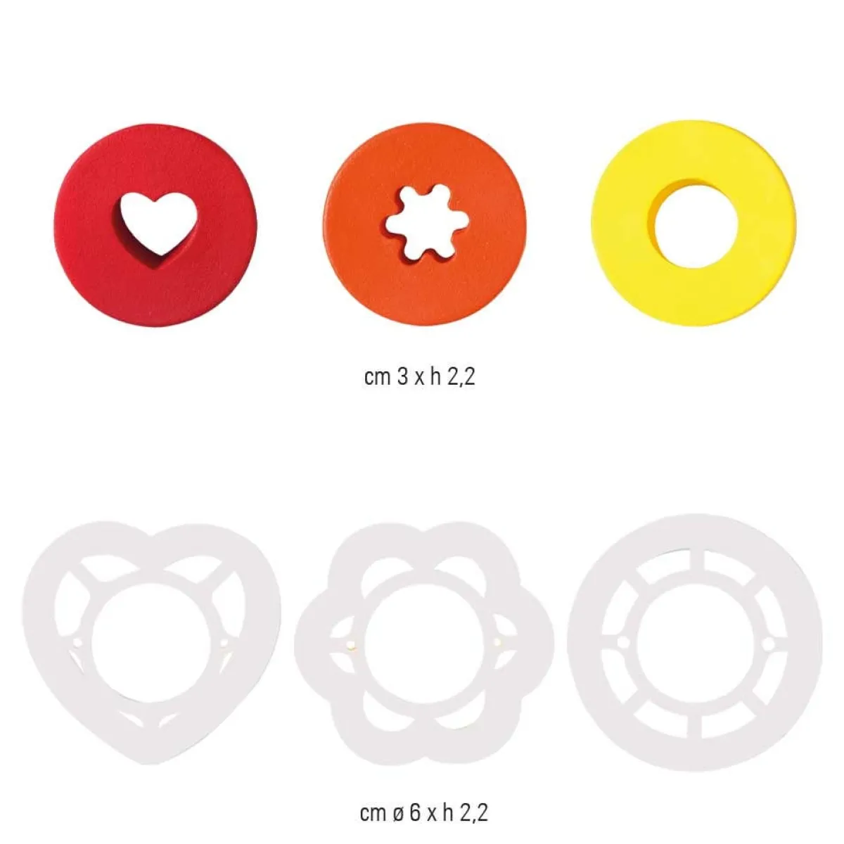 De set bestaat uit drie grote uitstekers en drie verwisselbare mini uitstekers, die in het midden van de grotere uitstekers te plaatsen zijn. Doormiddel van deze kleine uitstekers creëer je een klein figuurtje in je originele vorm. De praktische pinnen aan de binnenkant van de mini-uitsteker helpen je om de vorm perfect te centreren. Daarnaast kun je de uitstekers ook gebruiken om fondant uit te steken. Met de fondant creëer je een vrolijk effect op je koekjes.