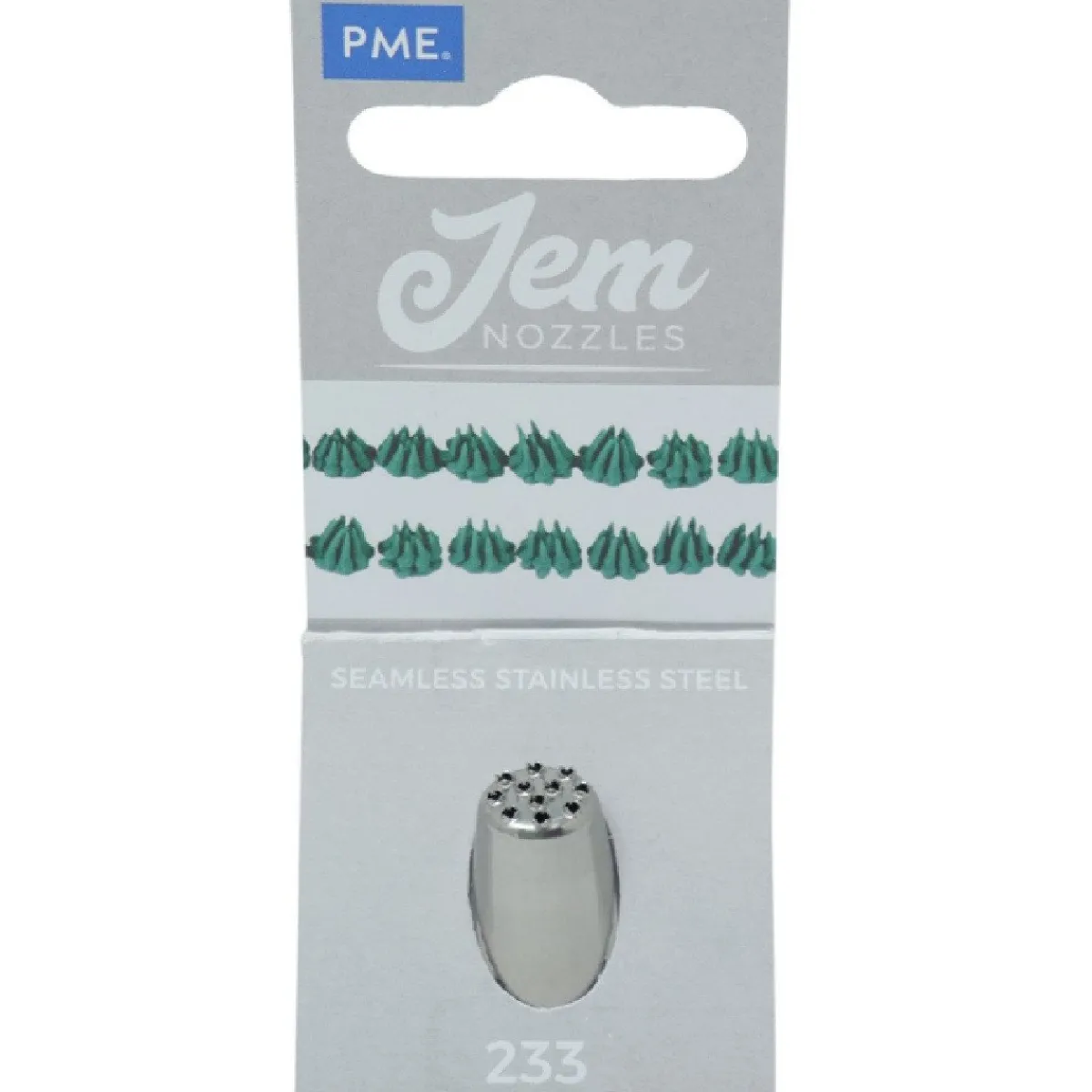Roestvrijstalen spuitmondje van JEM, van zeer goede kwaliteit. Het spuitmondje bestaat uit één stuk, dus er zijn geen lasnaden aanwezig. Met dit spuitmondje kan je een mooie grasdecoratie maken.