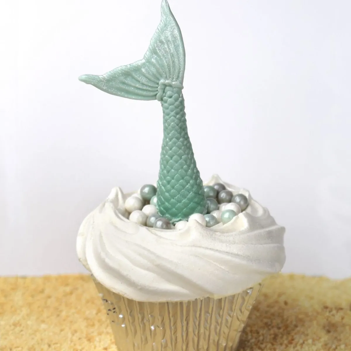 Met deze Katy Sue mold kun je gemakkelijk een elegante zeemeerminnenstaart maken. Je kunt deze staart plat gebruiken op een bijvoorbeeld een taart of plak twee staarten tegen elkaar aan voor een volledige 3D zeemeerminnenstaart.
