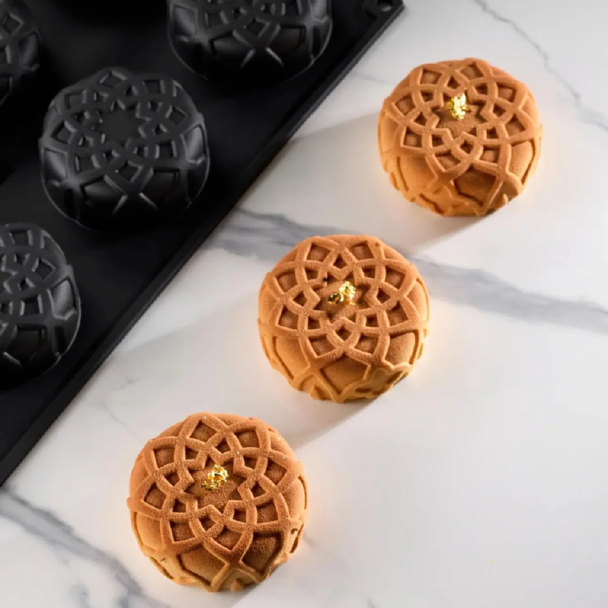 Deze vorm is perfect voor het creëren van elegante gebakjes, mousses, semifreddo of ijsgerechten. De reliëfstructuur maakt hem ook geschikt voor velvet sprays of glazuren, waarbij elk detail zichtbaar blijft.