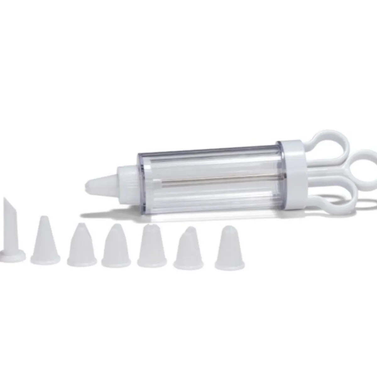 De Patisse Garneerspuit 19cm is een perfect alternatief voor een wegwerp spuitzak. Deze set is namelijk herbruikbaar en wordt geleverd met 8 verschillende spuitmondjes. De spuit is gemaakt van stevig materiaal. De inhoud kan aangedrukt worden met de ‘pusher’, zodat je de taart kan afwerken. Dankzij de verschillende spuitmondjes is het mogelijk om diverse effecten te creëren.