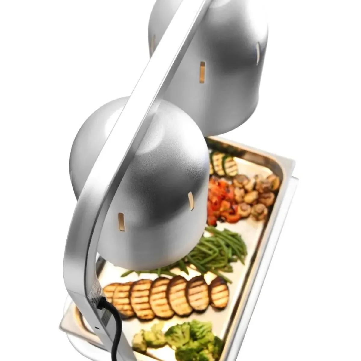 Ideaal voor het warmhouden van gerechten tussen bereiding en serveren. In hoogte verstelbaar tussen 590 en 790 mm. Versplintering bestendige lampen inbegrepen.