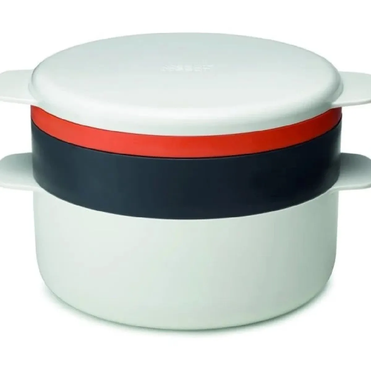 Met de Joseph Joseph Magnetron Kookset Set/4 is koken een fluitje van een cent. De set bestaat uit 4 onderdelen, die allemaal op elkaar gestapeld kunnen worden. Het is mogelijk om aardappels, pasta of rijst te koken in de kookpot, in het stoommandje kun je groenten en vis stomen en tot slot is de grill ideaal om onder andere bacon of champignons te grillen. En dat allemaal in de magnetron! Bovendien kan de deksel gebruikt worden op de kookpot en stomer, maar is deze ook geschikt als magnetronschaal. Binnen no-time staat er dus een heerlijke gezonde maaltijd op tafel.