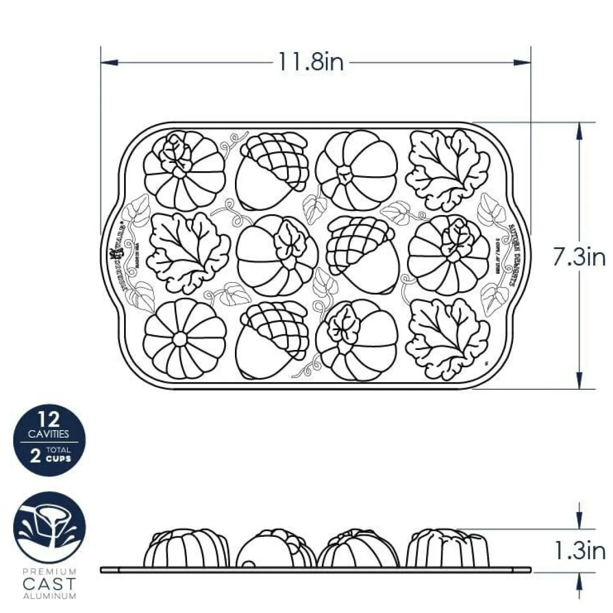 Als je aan de herfst denkt dan vliegen de eikels en dennenappels rond je oren. Daarnaast kun je genieten van heerlijke walnoten en pompoenen. Met deze bakvorm van het merk Nordic Ware kun je ieder moment genieten van verrukkelijke cakejes van eikels, dennenappels, walnoten en pompoenen. Je kunt in één keer bakken twaalf heerlijke cakejes bakken. Je kunt de cakejes decoreren met heerlijke chocolade, noten of andere decoraties voor een buitengewoon resultaat.